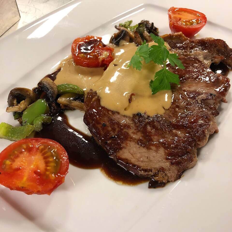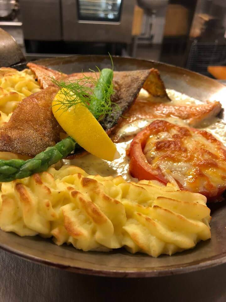 Fredag: Schnitzel med svampsås eller bea & råstekt potatis – Fiskgratäng med tomat & ost serveras med kokt potatis